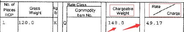 在集中托運時,一批貨物由幾件不同的貨物組成,有輕泡貨也有重貨,其計費重量則采用整批貨物的總毛重或總體積計量,按兩者之中較高的計算。